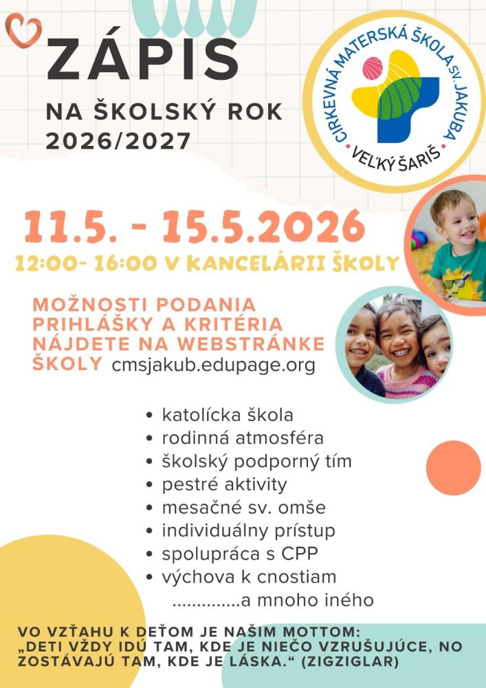 Zápis do Cirkevnej materskej školy sv. Jakuba Veľký Šariš